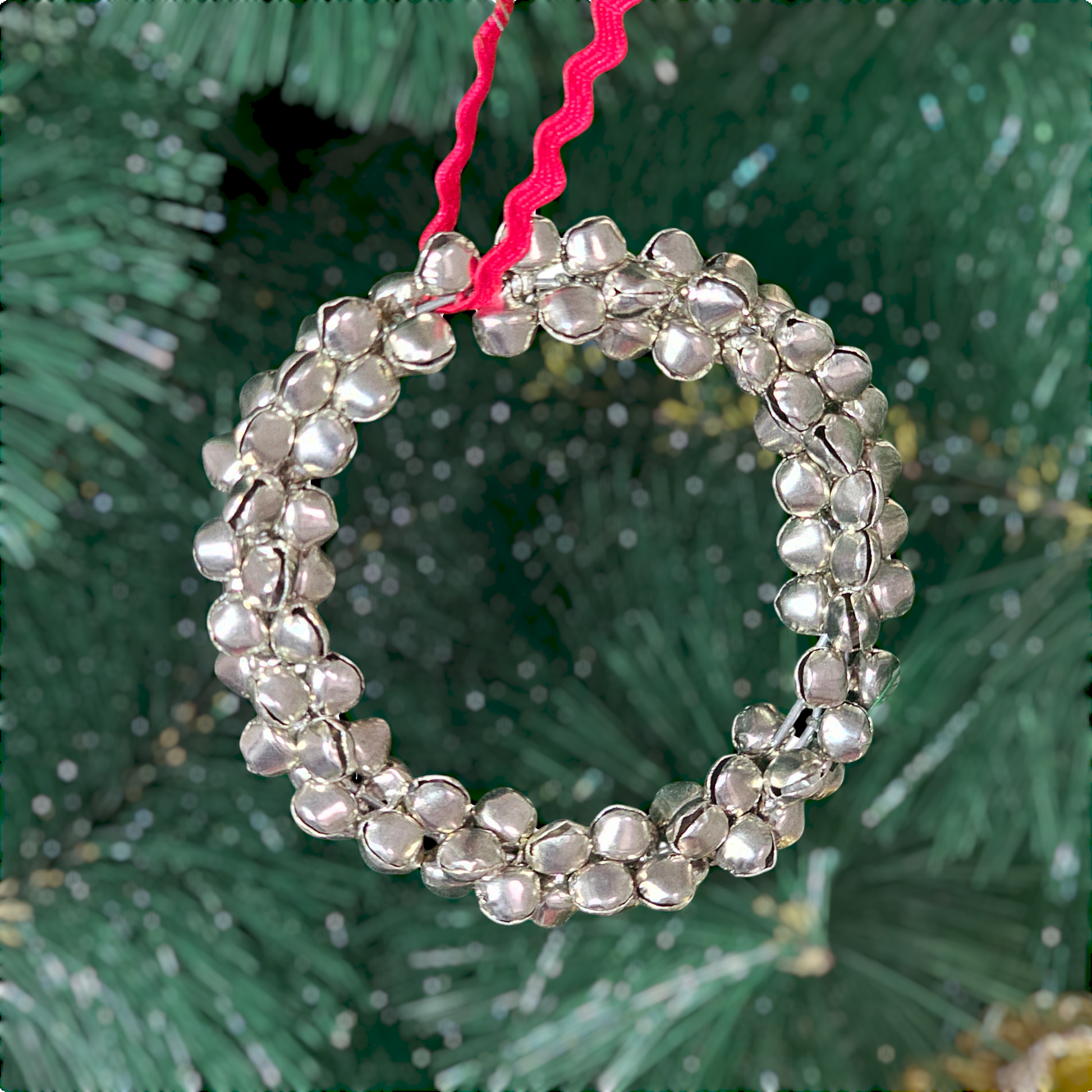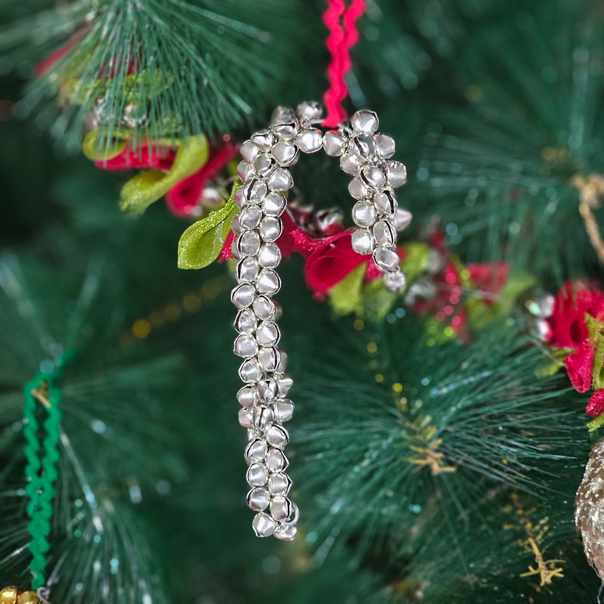 This charming set of three ghunghroo ornaments—star, candy cane, and wreath—adds a festive sparkle to your Christmas décor. Handmade, reusable, and eco-friendly, they're perfect for hanging on your tree or styling creatively around your home.
