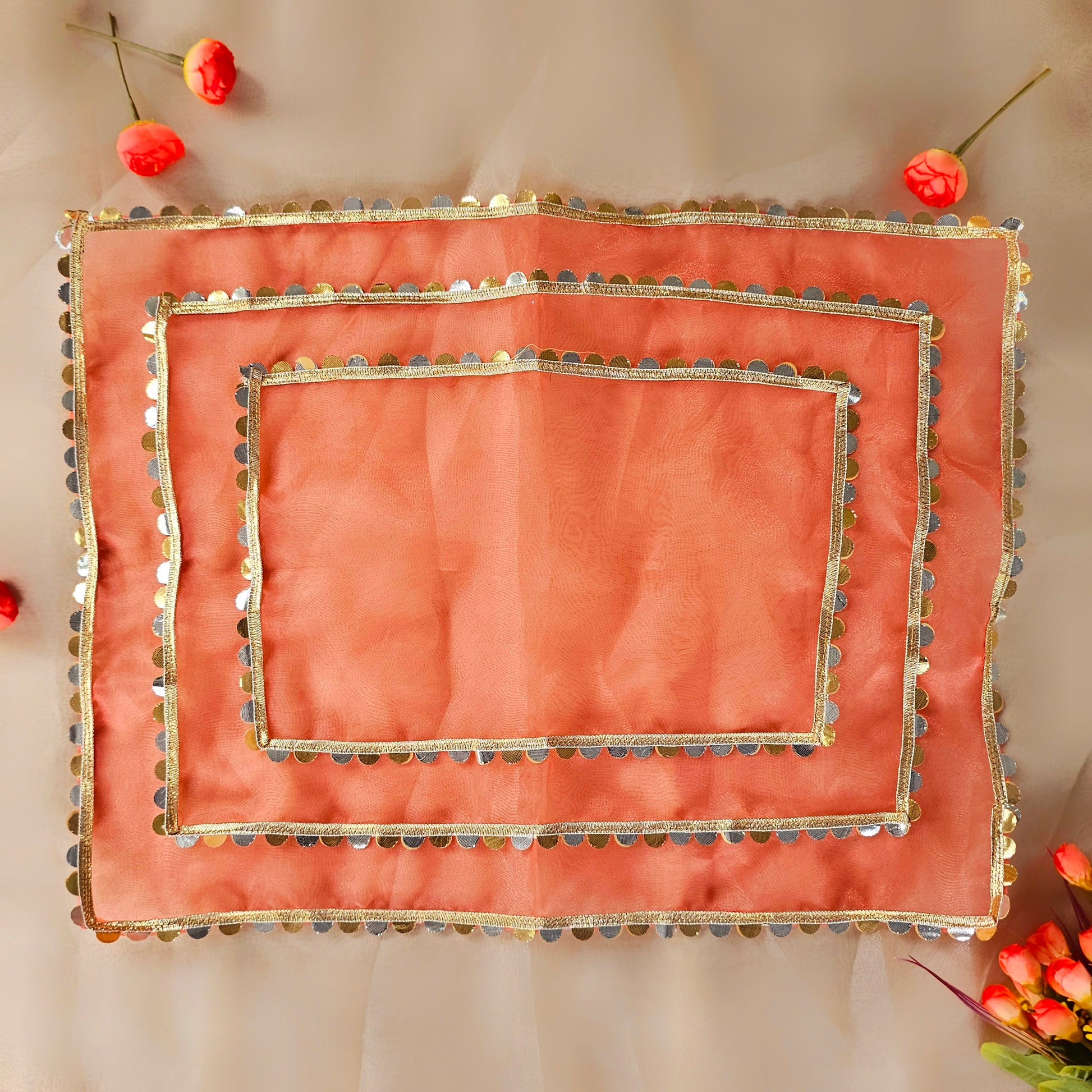 This organza tray cover is all you need to make festive gifting easy and elegant. You can use it as cover over your gifts, wrap boxes with the help of a tie, and more!