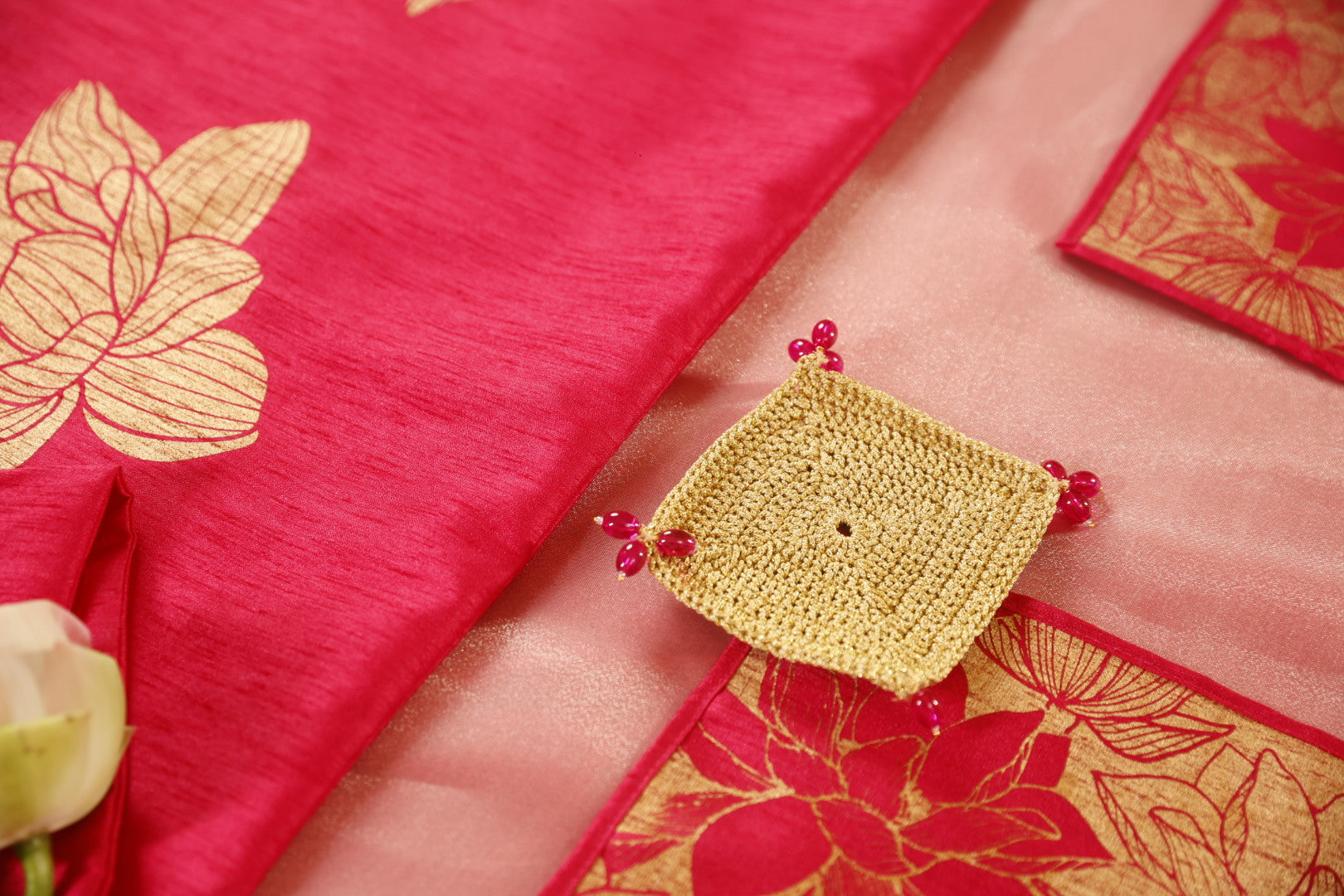 Festive and functional - our handmade crochet coasters are adorned with beads for an elegant dining setup. They come as a set of 6 in a muslin bag.
