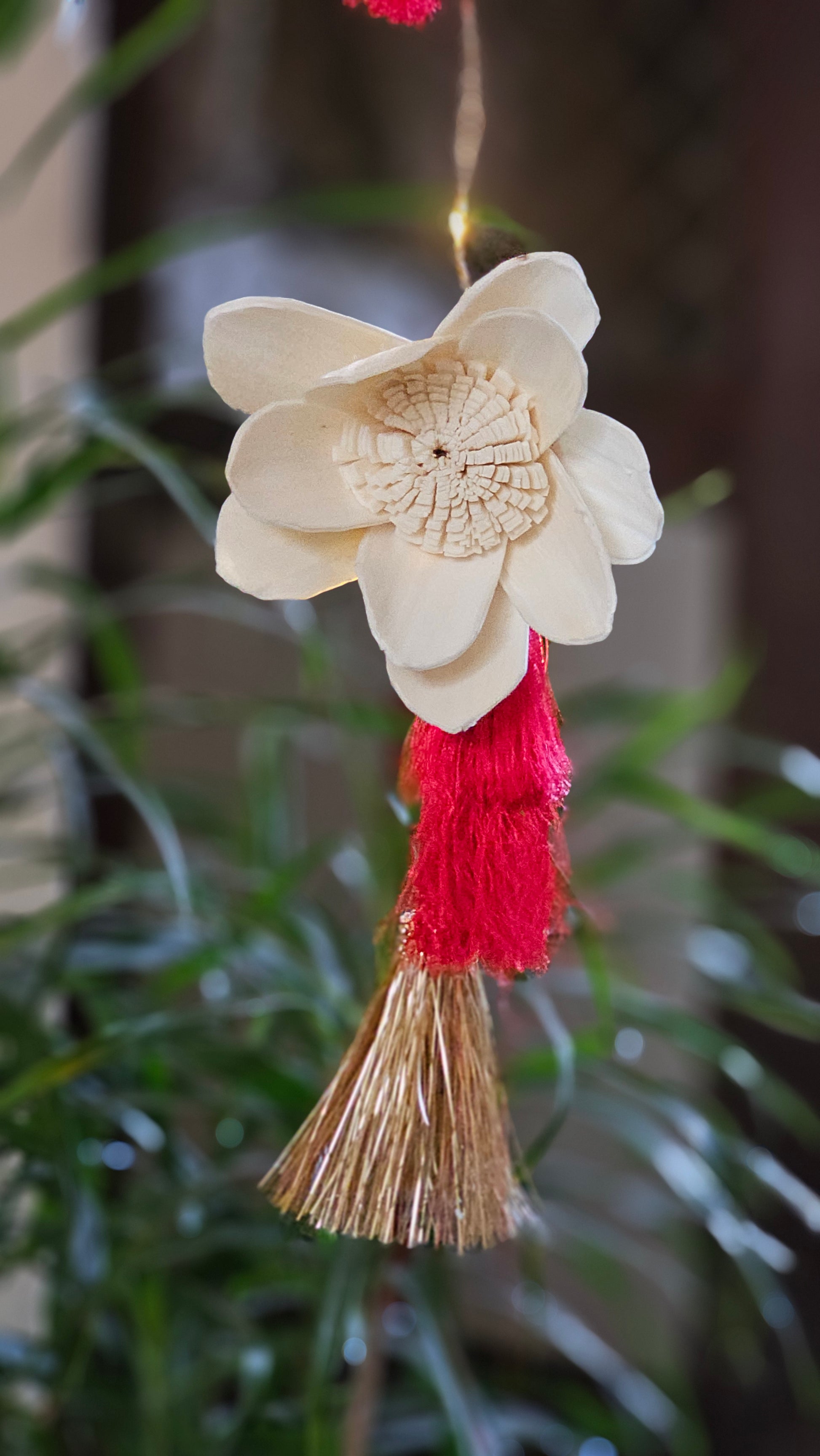 Inspired by Bengal’s craft heritage and accented with festive Christmas colors, these eco-friendly shola hangings add a charming touch to any space. Beautiful and reusable for seasons to come—hang them on doors or style them along your holiday tables. Also available in green!